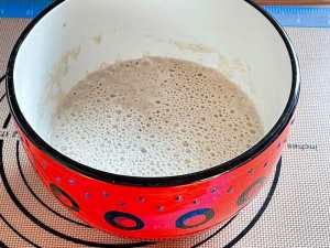 zakwas i drozdze wlewamy do miski z maka i wygniatamy ciasto