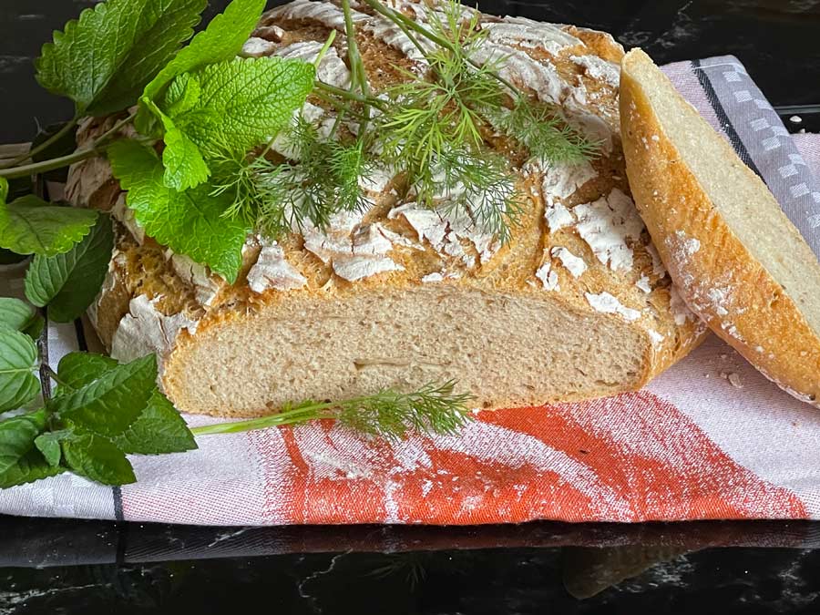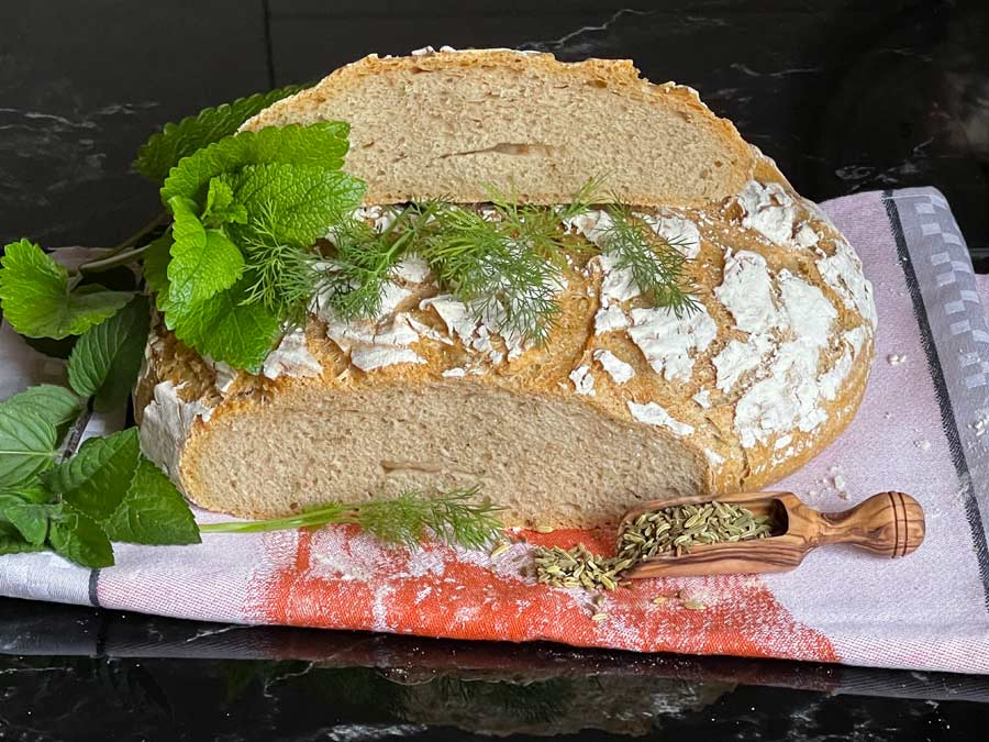 Szwajcarski chleb wiejski, klasyczny chleb z chrupiącą skórką i soczystym miękiszem o drobnych porach, uszlachetniony Pasta Madre dla odmiany i odrobina suszonych nasion kopru. Chleb jest tak chrupiący i pachnący, a za razem delikatny,  że sam rozpływa się w ustach. Przy próbowaniu tego chleba było trochę śmiechu, ponieważ jedna osoba skomentowała, że to jest ” chrupiący chleb dla bezzębnych”  tego jeszcze nie było.😂🤣