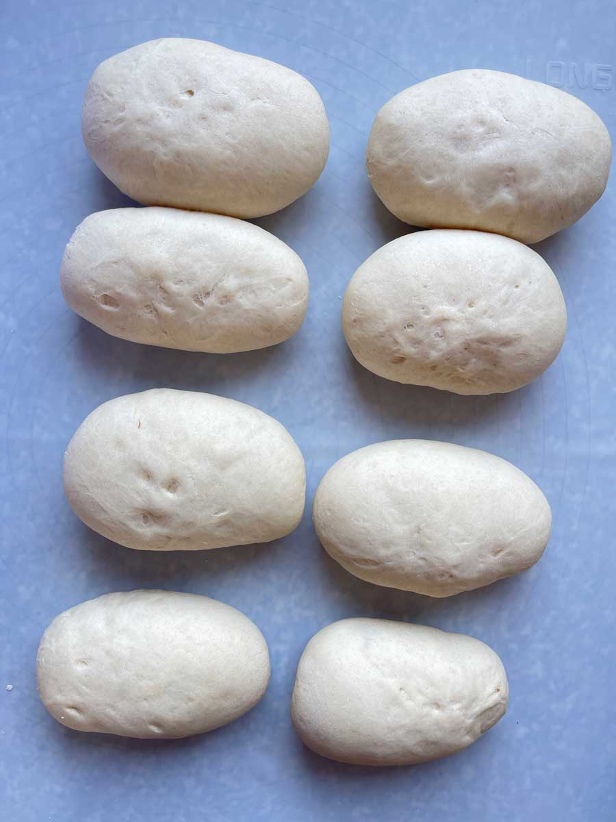 Układać złączeniem do dołu i zostawić do wyrośnięcia przez 60 minut w ciepłej temperaturze pokojowej.