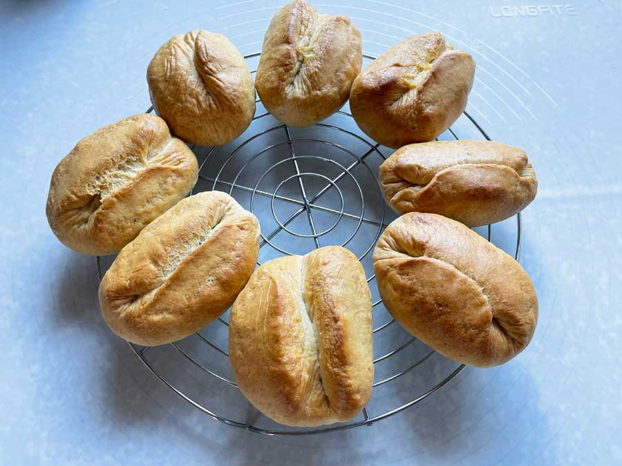 Berlińskie bułeczki, czy okrąglaki co nie ma nic wspólnego z wyglądem, właściwie tyle jest synonimów znaczenia- Knüppel-, że nie wiadomo o jaką nazwę chodziło twórcy tego przepisu za czasów wojny. Tak wyczytałam w internecie, ale zaraz, bo frustratów nie brakuje jak i na niemieckich stronach internetowych, jak i polskich, pisze tam jeden taki o co chodzi temu piekarzowi, przecież Berlin istnieje jako stolicą od 1871 roku, bo ten napisał, że ten przepis pochodzi z III Rzeszy i tak z niezrozumienia, zaraz powstają dziś nazwane bejtami, a to po prostu są komentarze ignorantów!!! Wspomniałam tu o tym, bo rozbawił mnie ten komentarz a myślę, że pocieszę również tym tych, którzy przejmują sie hejtami!😂😋 A tymczasem zajmijmy sie przepisem, ten jest bez zaczynu, w następnym pokażę te bułeczki z zaczynem i dostrzegalną miedzy nimi różnicę.