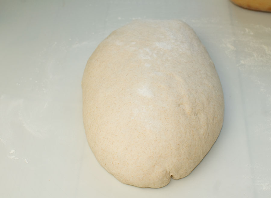 Formę posmarować tłuszczem i posypać lekko kminkiem oraz ziołami prowansalskimi. Ciasto wyłożyć na oproszona mąką powierzchnię, założyć jego boki do środka, ale nie zagniatać, czynność powtórzyć, odwrócić założeniem na spod, uformować osełkę i włożyć do formy.