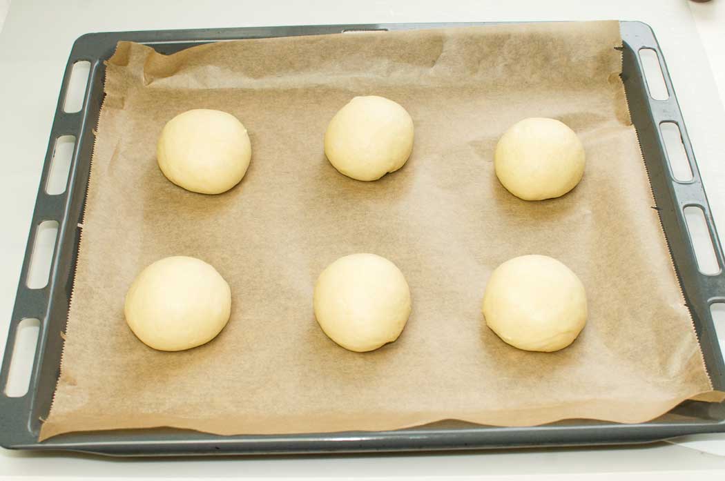 Każdy kawałek uformuj na kulkę i ułóż daleko od siebie,  na blasze wyłożonej papierem do pieczenia.