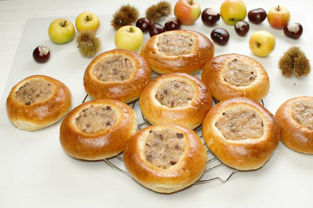 W ostatnim poście Orzechowy chlebek jesienny pisałam, że następne będą jesienne bułeczki z jabłkami, konsekwentnie do obietnicy zapraszam na Jabłkowo – bananowe bułeczki w jesiennym nastroju. Ciasto jest wyjątkowe i interesujące, bowiem w składzie ma zarówno drożdże jak i proszek do pieczenia, co nadaje mu wyjątkową delikatność i pulchność. Proszek do pieczenia w połączeniu z drożdżami nie tylko przyspiesza wyrastanie ciasta, ale też sprawia, że podczas tego procesu już samo ciasto staje się miękkie i puszyste. Polecam!