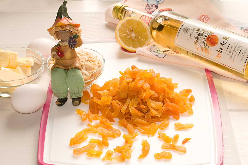 1. Pokrój morele na paski i wymieszaj z likierem morelowym.