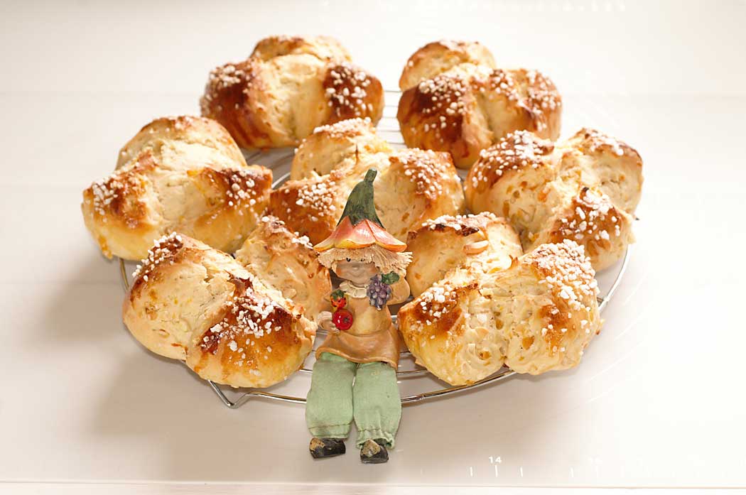 Przełóż bułeczki z blachy na kuchenna kratkę i ostudź. Pinzen można podać z brzoskwiniową lub morelową konfiturą dla dzieci, a dorośli mogą wypić przy kawie razem podanej  kieliszeczek brzoskwiniowego likieru.