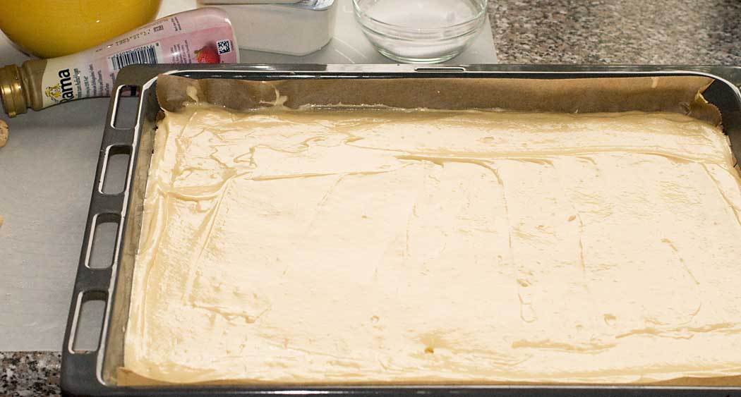 • Wymieszaj 350 g mąki, budyń w proszku, proszek do pieczenia i krótko wmieszaj w ciasto. Na koniec dolej 200 ml Fanty i jeszcze krotko wymieszaj.