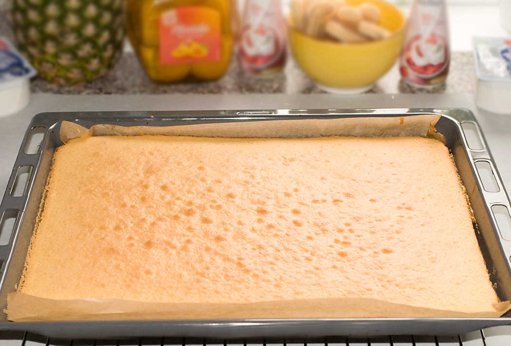Rozłóż ciasto na blasze do pieczenia i piecz w nagrzanym piekarniku przez około 20 minut.  Niech ostygnie.