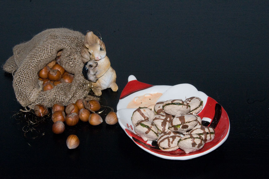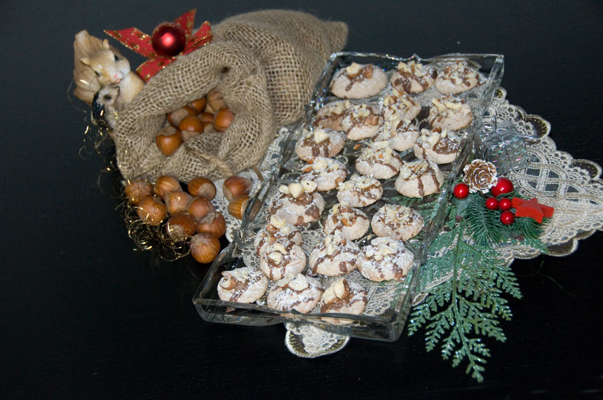 - ok. 30-35 orzechów laskowych jeśli chcemy ułożyć całe np. na wszystkich ciasteczkach, jeśli lubi różnorodną dekorację możemy pofantazjować