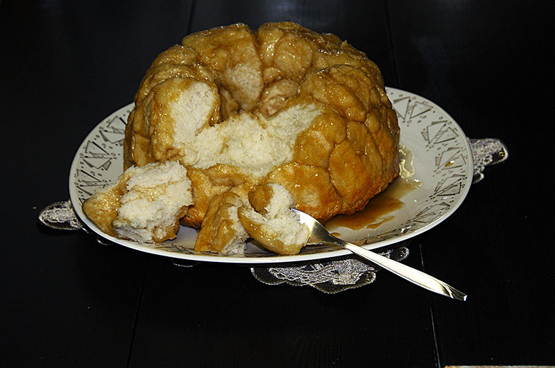 Podawaj Małpi Chleb na ciepło lub schłodzony z pozostałym sosem karmelowym, można tez dodatkowo podać Ajerlikier, według uznania. Tego smaku i tak nie da się niczym ani zmienić, ani zepsuć! Po prostu pycha!😊