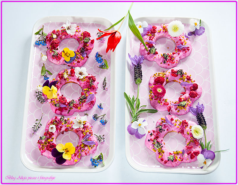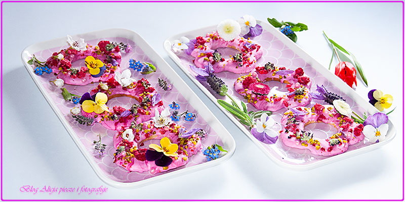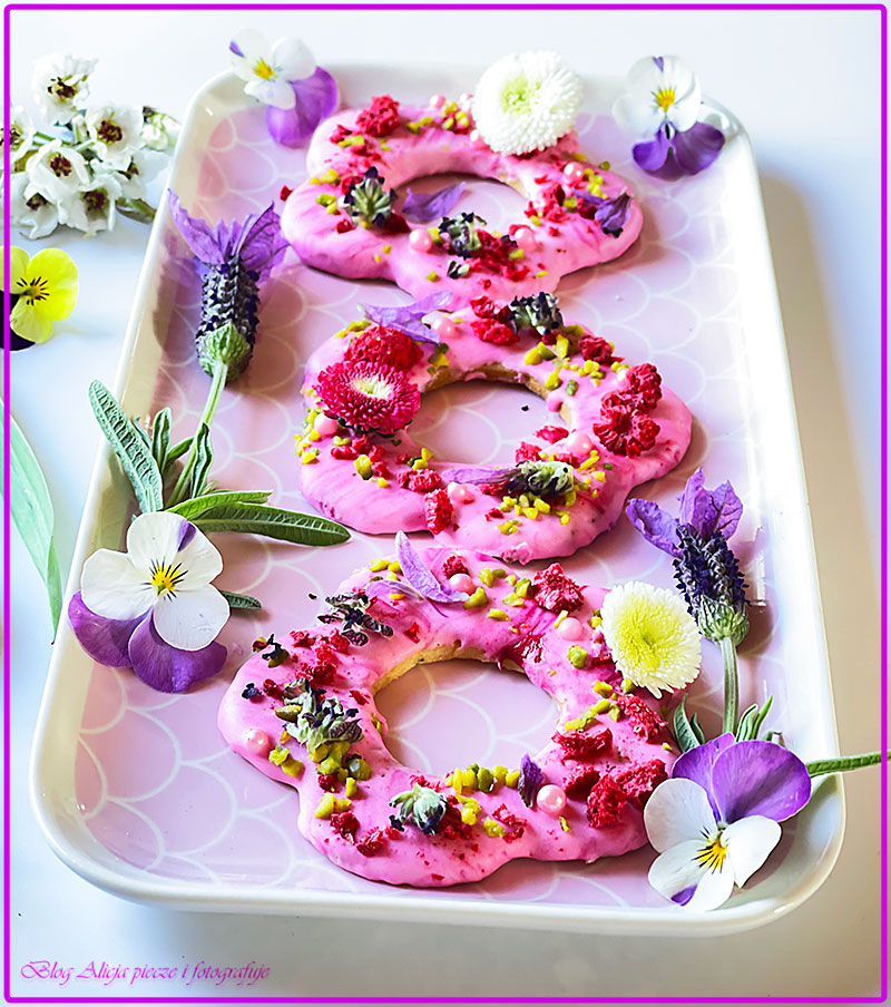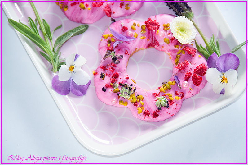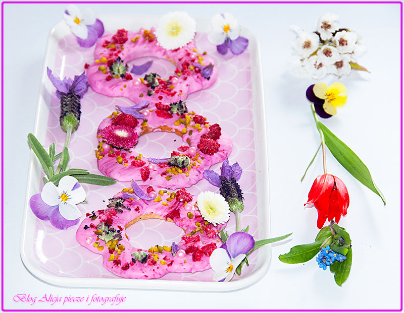 Zapraszam na dalszy ciąg moich różowych słodkości. Pink kolor ostatnio mną zawładnął i zupełnie mnie oczarował. Dlatego też jeszcze kilka wpisów na moim blogu własnie jemu poświecę. Może to symptom nadejścia Pani Wiosny jakże kwiecistej i kolorowej, na która z resztą co roku wyczekuje już od marca. Niech te kwieciste i kolorowe ciastka będą jej zwiastunem. Kwiatki i suszone pachnące maliny sprawiają, że nawet czujemy jej zapach.Zapraszam po przepis, ciasteczka wspaniale udekorują także nasz wielkanocny stół.