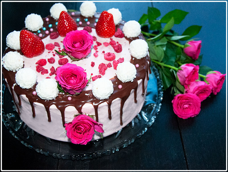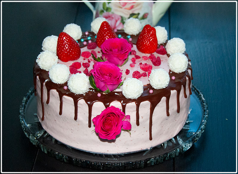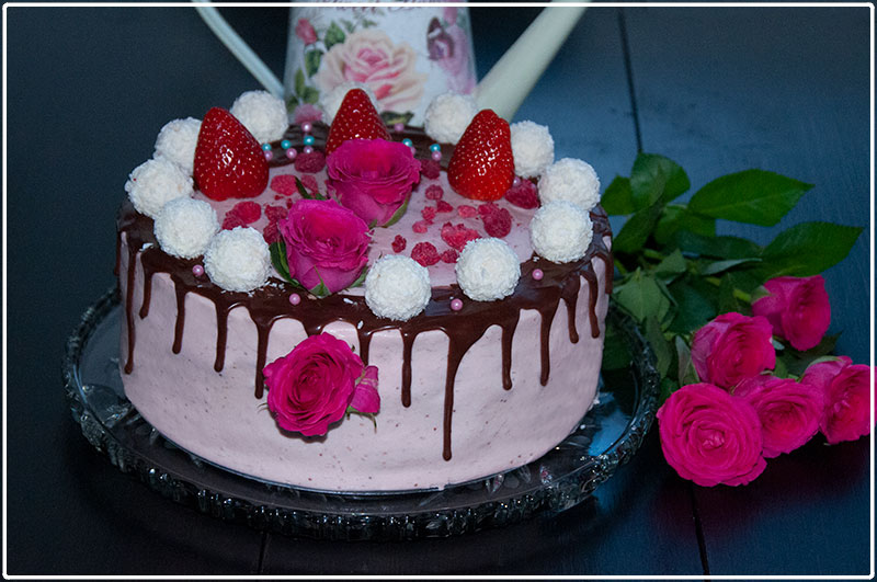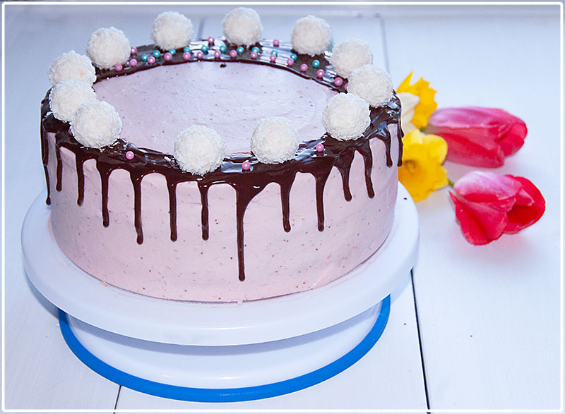 Tort czekoladowo – truskawkowy z dripem