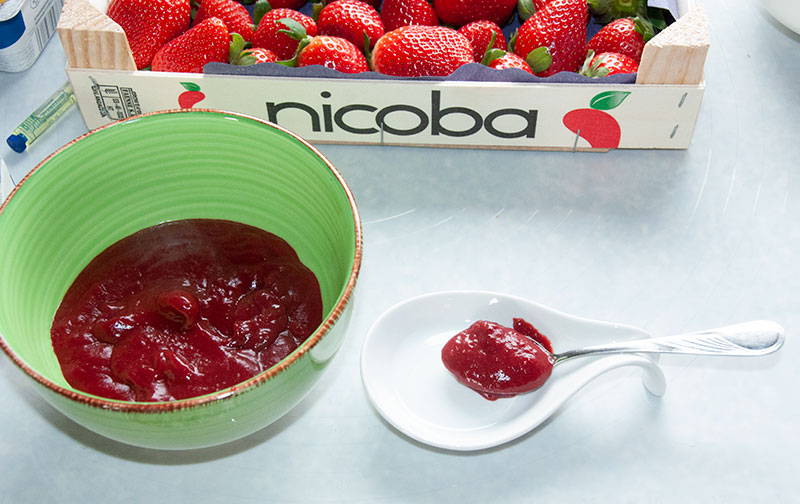 Do kremu rozmroź truskawki. Następnie zmiksuj i gotuj na średnim ogniu, aż prawie cały płyn wyparuje, a następnie pozostaw do całkowitego ostygnięcia.