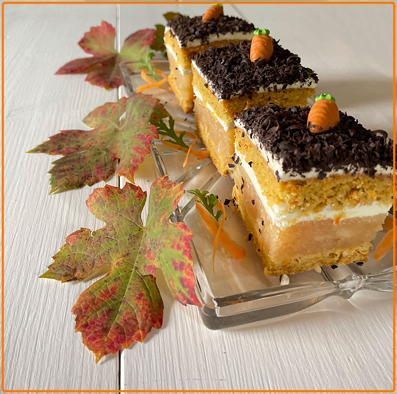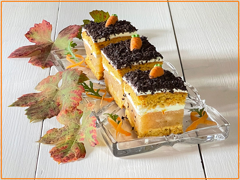 Jak już pisałam w ostatnim poście, jesień to piękna pora nie tylko ze względu na jej kolory, ale także ze względu na jej dary w postaci wielu owoców, warzyw i grzybów. Widząc te przepyszne jabłka, śliwki, gruszki, czy warzywa nie mogę się im oprzeć i natychmiast zabieram się do dzieła! Tak więc, dzisiaj prezentuję Wam jedno z moich dzieł, a jest to ciasto marchewkowe przełożone jabłkami z gruszkami i kremem. Na wstępie chcę podpowiedzieć, że ilość cukru, czy w ogóle dodanie go do jabłek należy przemyśleć i dodać adekwatnie do ich gatunku, ale i wg. własnego smaku. Zapraszam do przeczytania i po przepis.