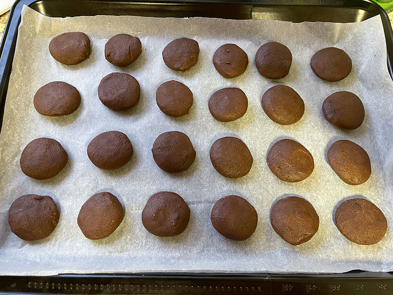Uformuj kulki wielkości orzecha włoskiego każdą spłaszczając. Ułóż je na