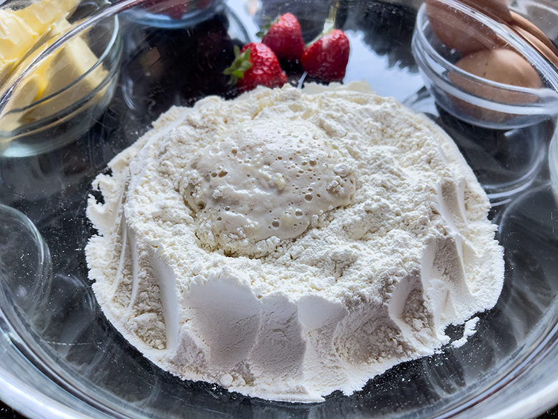1. Na ciasto: wsypać mąkę do miski, zrobić wgłębienie w środku. Wkruszyć drożdże, wymieszać z 10 łyżkami ciepłego mleka, łyżką cukru i oprószyć brzeg odrobiną mąki. Pozostawić na 15 minut, aby urosły drożdże. Następnie dodać pozostałe mleko, jajka, cukier, cukier waniliowy, szczyptę soli i masło, i zagnieć gładkie, lepkie ciasto. Foremki do pieczenia wysmarować masłem i posypać mąką, albo manną. Wlać ciasto, przykryć i odstawić na około 30 minut. Ja użyłam 4 form mini do babek piaskowych, ale są też dużo mniejsze foremki jakby specjalne, wtedy wyjdzie 8-10 savarins. Ciasto można też od razu rozłożyć do form.