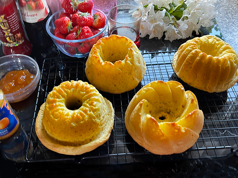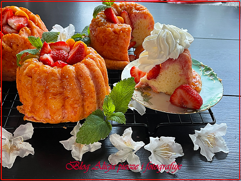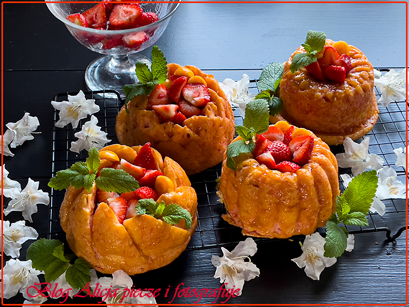 Dzisiaj ciasto drożdżowe, które uważam za najpyszniejsze i najdelikatniejsze ze wszystkich ciast drożdżowych. Ja zaliczam je do tego samego rodzaju co włoska Baba(kliknij tutaj), chociaż nieco inaczej wykonujemy. Jednakże kombinacji jest tyle przy obydwu, ile fantazji u wykonującego te ciasta. Są to leciutkie ciasta, delikatne i puszyste przez co i bardzo higroskopijne, lekko nasączające się właśnie rożnymi ponczami, likierami itp. Dzisiejsze Savarins są nasączone likierem truskawkowym nieco rozcieńczonym sokiem. Zapraszam i na prawdę bardzo polecam nawet na wystawny stół!