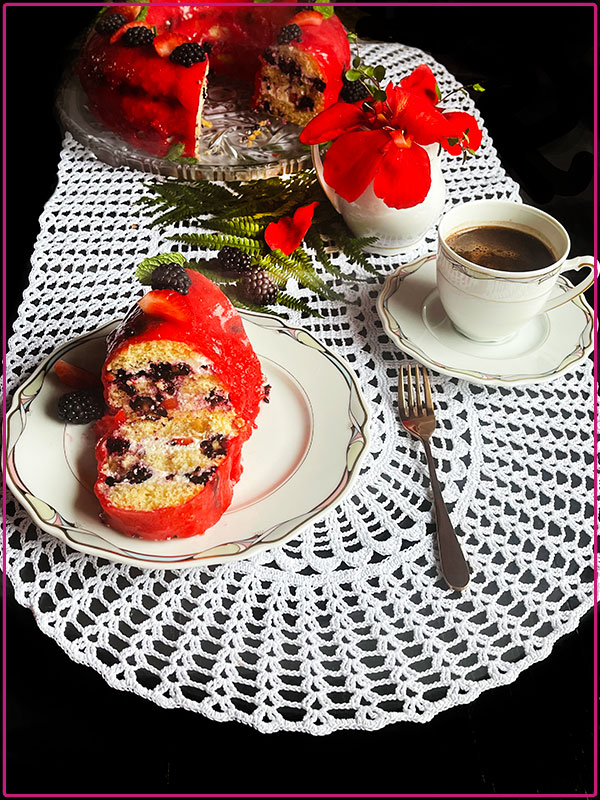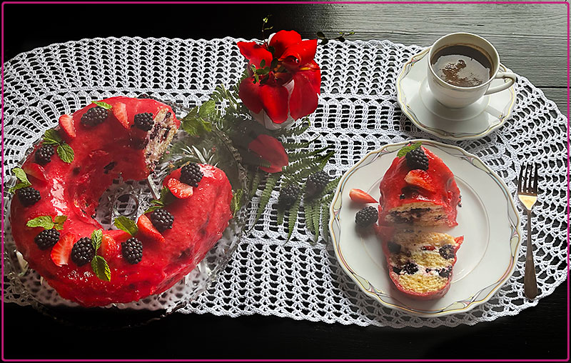 Jeżynowo – truskawkowy wianek biszkoptowy