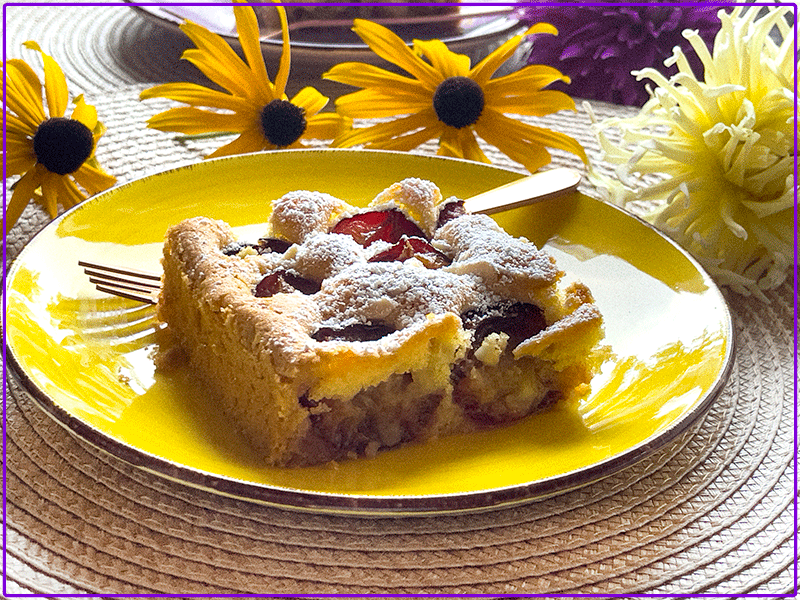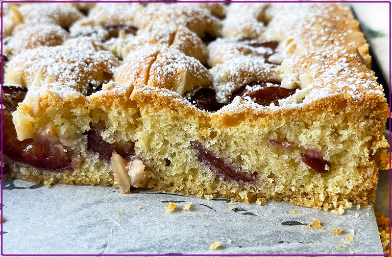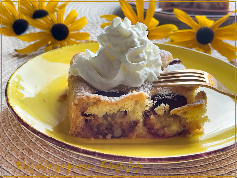 To ciasto piekłam zaraz po powrocie z Ameryki, czyli w sierpniu tamtego roku 2022. Chociaż nie była to pierwsza moja podroż do Ameryki, to i tak wrażenia z niej były silne i zrobiły niezłe zamieszanie, skoro zapomniałam podzielić się tym przepisem na moim blogu.😊 Zgodnie z powiedzeniem: co się odwlecze, nie uciecze-, dzisiaj zapraszam na przepyszne, rozpływające się w ustach ciasto ze śliwkami i migdałami.