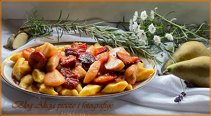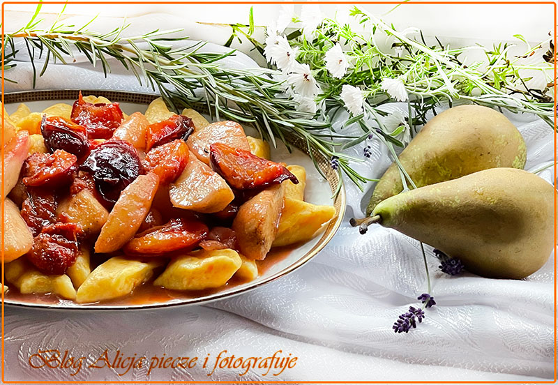 Kopytka marchwiowe ze śliwkami i gruszkami