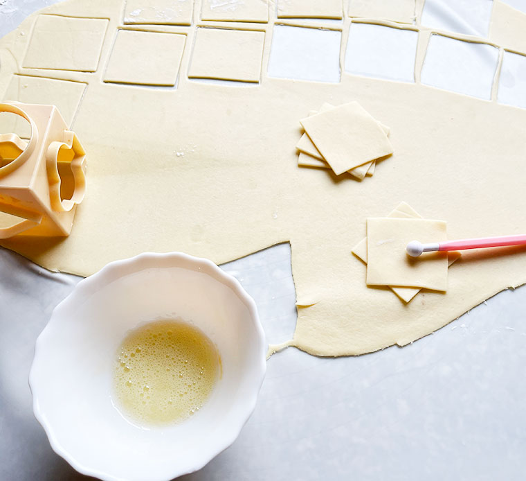 PS. Jesli jest dostępna wycinarka kwadratowa z obrzeżem ząbkowatym, to jest bardziej wskazana. Tłuszczu roślinnego nie zamieniać na masło! Orangenblütenwasser, mozna kupić w dużym niemieckim sklepie.