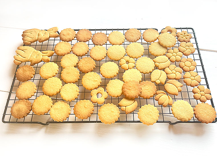 Gdy ciasto wyjmiemy z lodówki od razu przystępujemy do wałkowania na grubości 0.5 cm i wycinania kształtów. Ciasteczka nie mogą być za cienkie, gdyż podczas pieczenia zdeformują się wysychając. Jeśli już specjalnie potrzebujemy bardzo cienkie ciasteczka upiec, musimy ustalić odpowiednią temperaturę i czas ich pieczenia, nie będą to dane, które znajdziesz w czyimś przepisie o innej grubości.