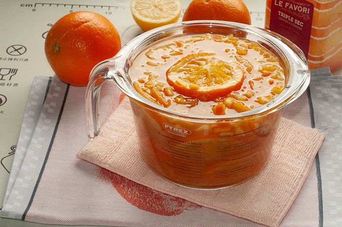 Krok 5 -przygotuj pomarańcze , umyj dokładnie w gorącej wodzie, pokrój w plastry 3 mm i zagotuj ze składnikami z krok 5. Wyłóż na papier z kuchennej roli do osuszenia na krotko przed przystąpieniem do układania. Moje pomarańcze są nieco dłużej gotowane, bo są odjęte z ilości pomarańczy do pomarańczy w syropie wcześniej przygotowanych, przez co ucierpiała ich struktura, dlatego Ty swoje pomarańcze tylko zagotuj na wolnym ogniu i zestaw pozostawiając je w syropie do naciągnięcia.
