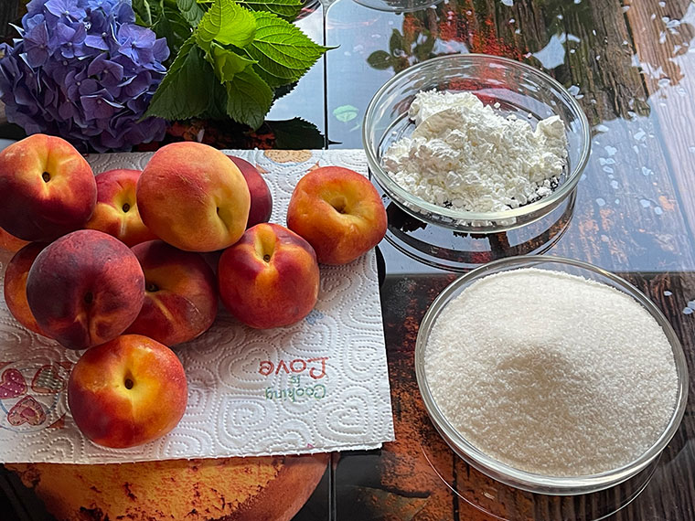 - 10 małych, dojrzałych brzoskwiń (1,2 kg),