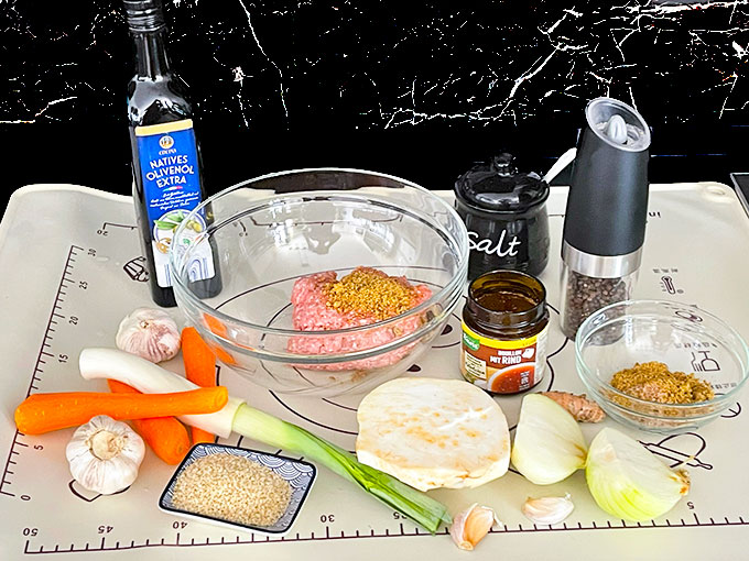 Aby przygotować farsz: połącz mielone mięso z cebulką, czosnkiem i marchewką . Dopraw solą i pieprzem oraz bulionem w proszku.
