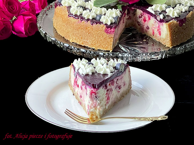 Dzisiaj zapraszam na sernik z porzeczkami, które latem można zamrozić i potem w każdej chwili wykorzystać do wypieków. Jesli zamrozisz owoce w pojemnikach umieszczając w nich niewielkie ilości owoców, to po odmrożeniu pozostaną w miarę kształtne. Na glazury wyśmienicie nadają się marmolady, po zagotowaniu z niewielką ilością wody i dodaniu żelatyny uzyskasz piękną i lśniącą glazurę. Polecam ten sernik na każdą okazję.