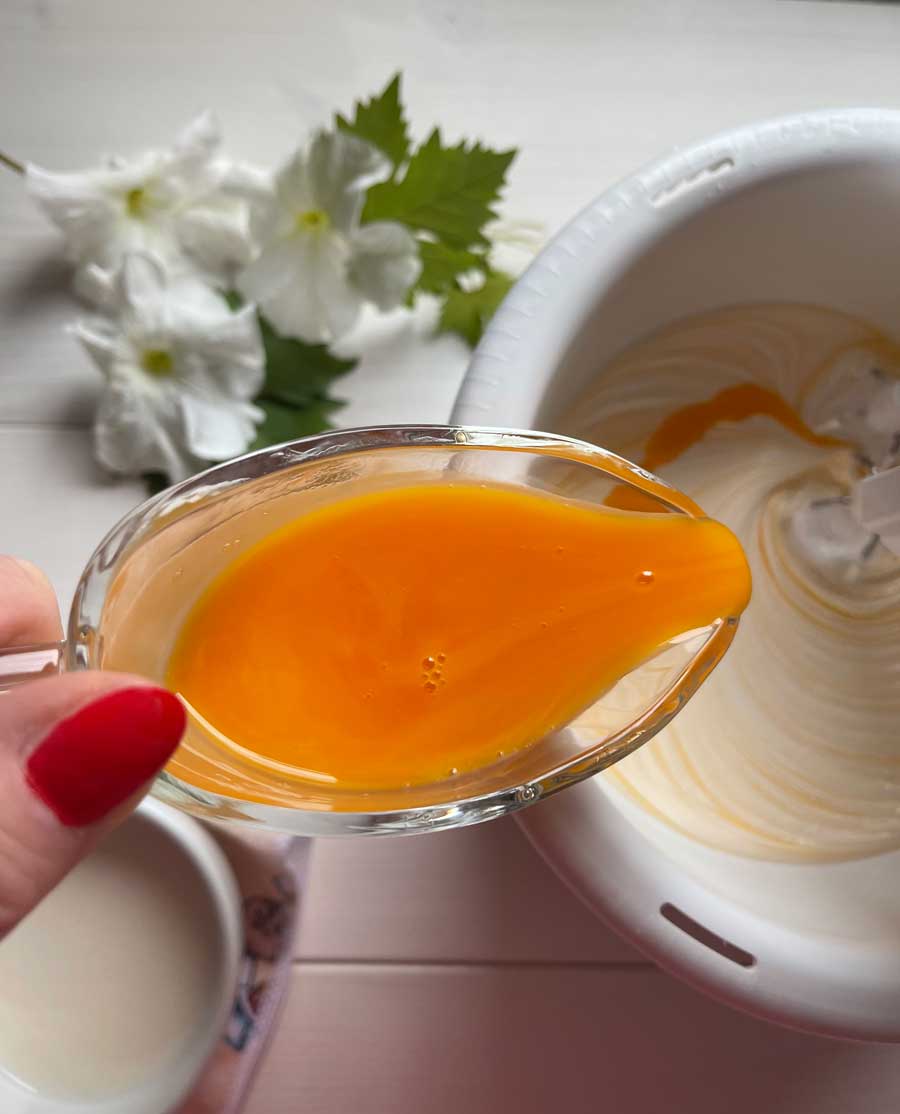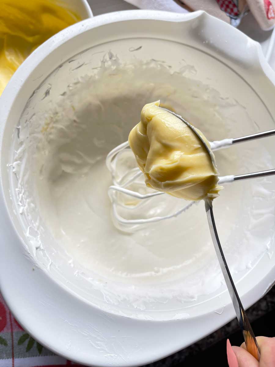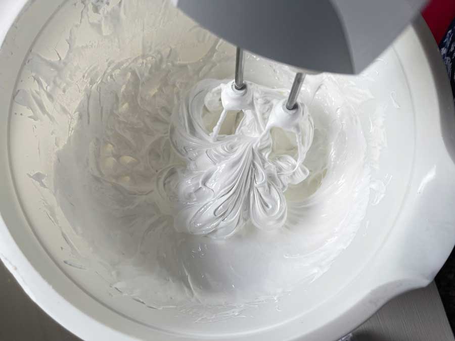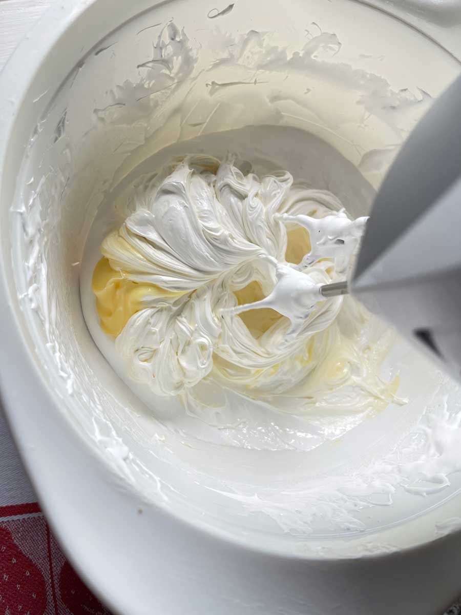 Następnie ubijaj wszystko mikserem, aż białka będą tylko letnie (maksymalnie 30°C).