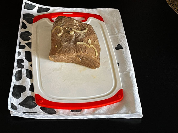 - 1 kawałek mięsa wołowego (około 1,5 kg, najlepiej polędwica wołowa jest bardzo soczysta i idealna do duszenia.)